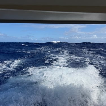 About an hour into the journey, I was at the helm and happened to glance ahead. I noticed what looked like breaking waves a few hundred feet in front of the boat. I immediately became concerned that it might be a submerged shipping container and took abrupt evasive action to avoid hitting whatever was ahead.