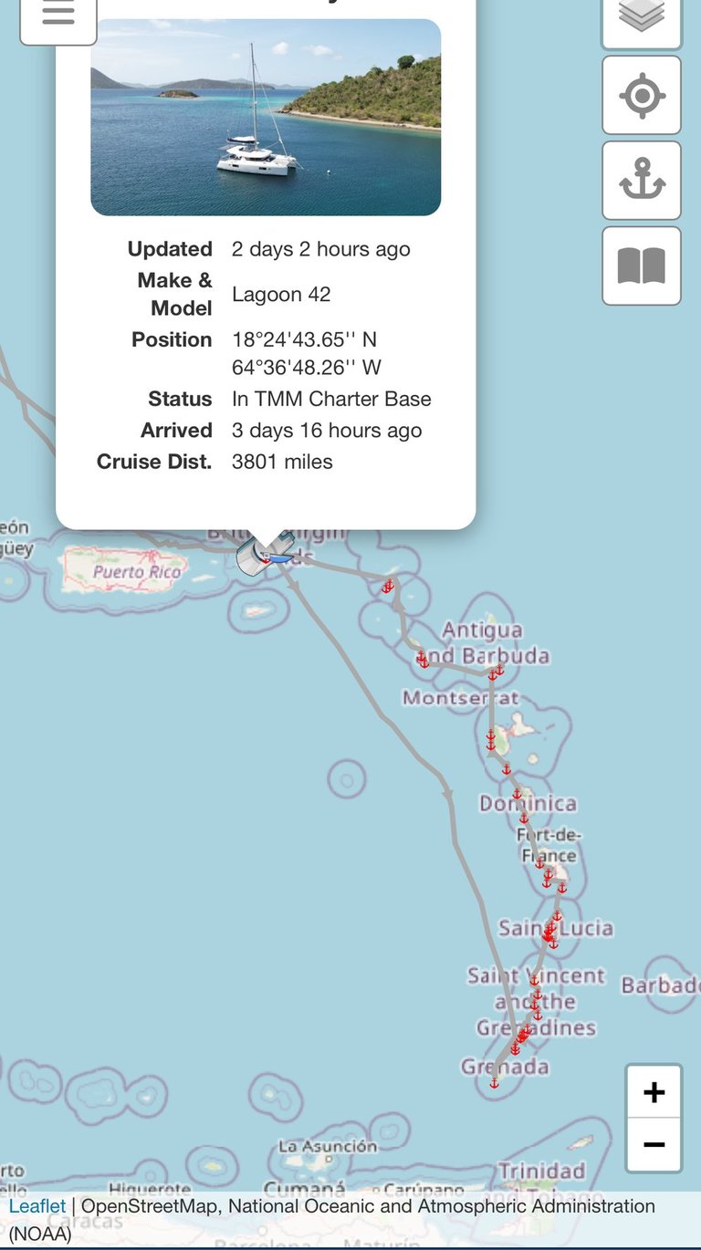 About an hour before we arrived, we encountered the strongest squall of the trip, bringing heavy rain and 40-knot winds. Land was already in sight, and at about 6:00 p.m. we arrived in the BVI to clear customs.